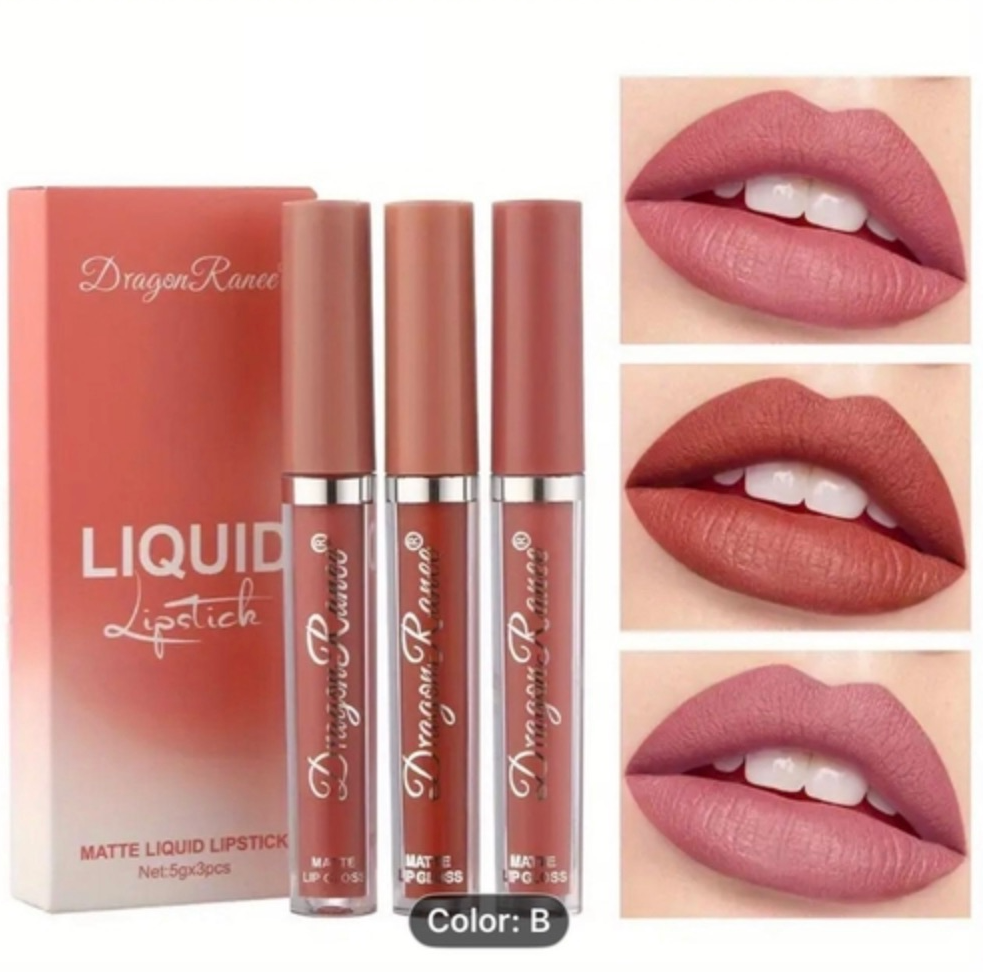 - 3-piece matte liquid lipstick set